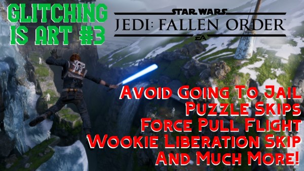 Looking for a way to replay Jedi: Fallen Order with a fresh twist? Break the rules with help from this massive sequence break/shortcut/technique compilation, the 3rd episode of Glitching Is Art! https://www.youtube.com/watch?v=OE5GMDpskys